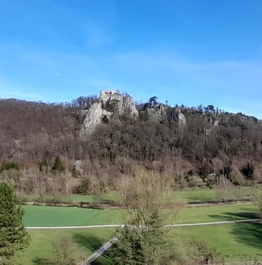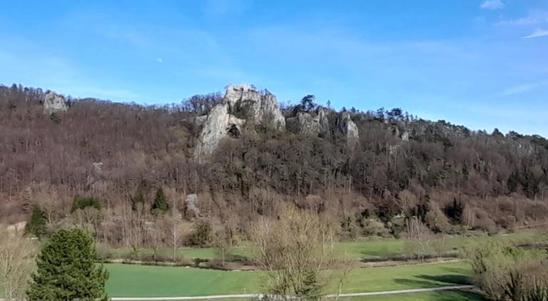 Schon von weitem am Albtrauf zu sehen, überragt die Stadt an steilem Felsabhang oberhalb einer Neandertaler-Höhle die Ruine Rusenschloss. Diese ist von der Stadtmitte aus innerhalb einer knappen Stunde zu Fuss zu erreichen und bietet einen entspannenden grandiosen Ausblick auf das Blautal und die Umgebung.
